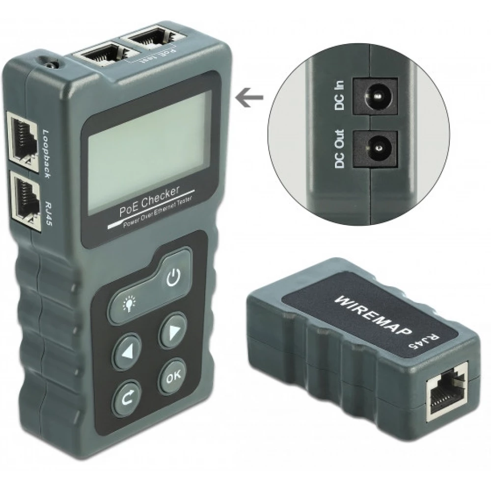 DELOCK LCD kábel tesztelő RJ45 / PoE / DC