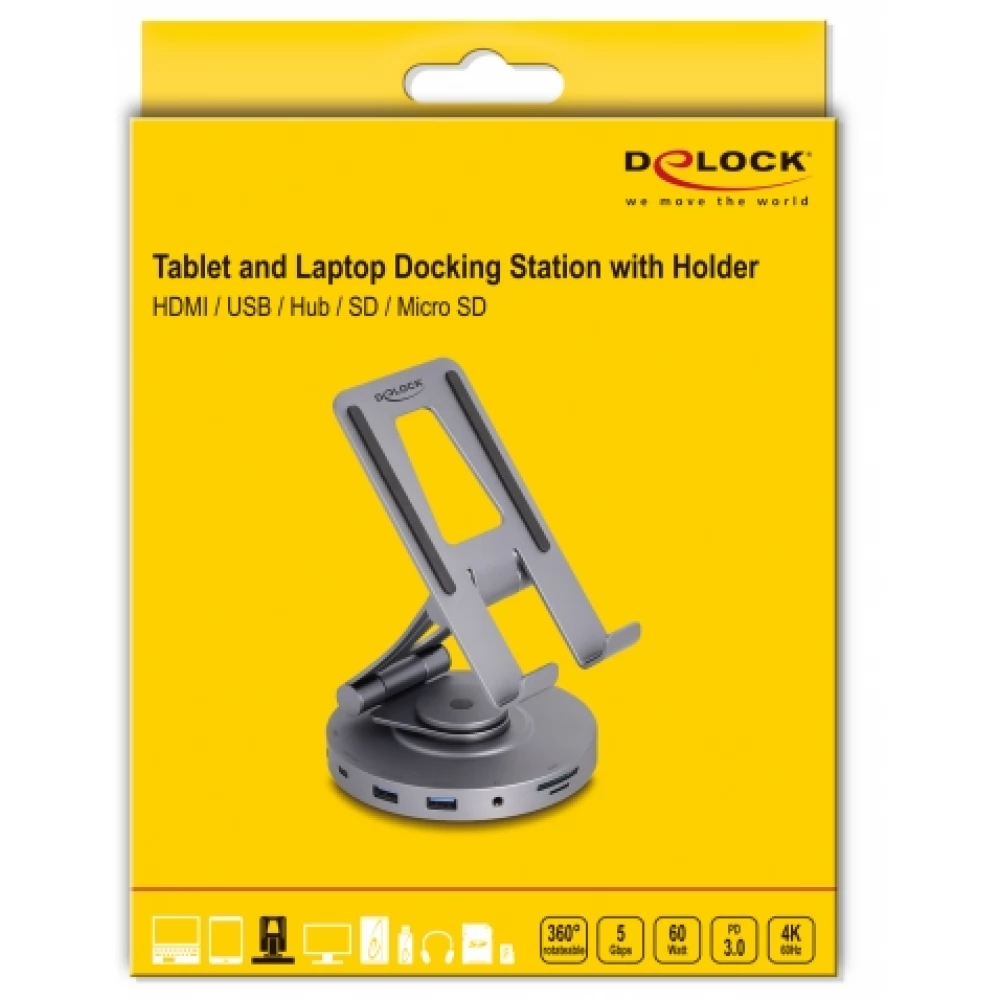 DELOCK Tablet és laptop dokkoló állomás 4K beépített tartóval