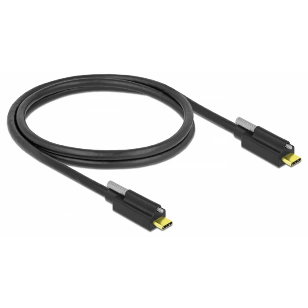 Ez a Delock USB kábel lehetővé teszi az USB Type-C™ csatlakozóval rendelkező eszközök és a szabad USB Type-C™ porttal rendelkező személyi számítógép vagy laptop összekötését. Az USB Type-C™ csatlakozó csavarja biztosítja az összekötést, és megakadályozza a kábelek véletlenszerű szétkapcsolódását.