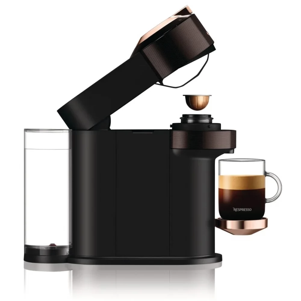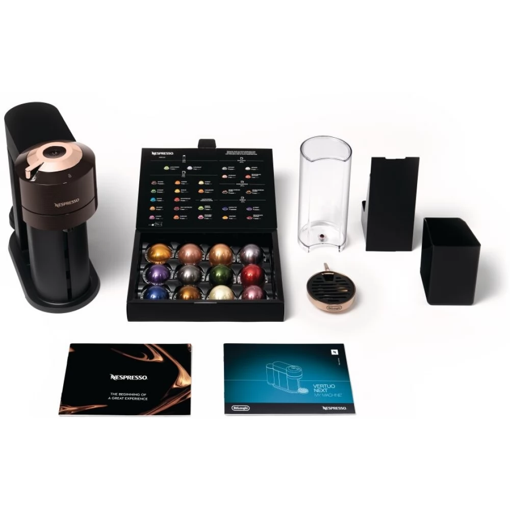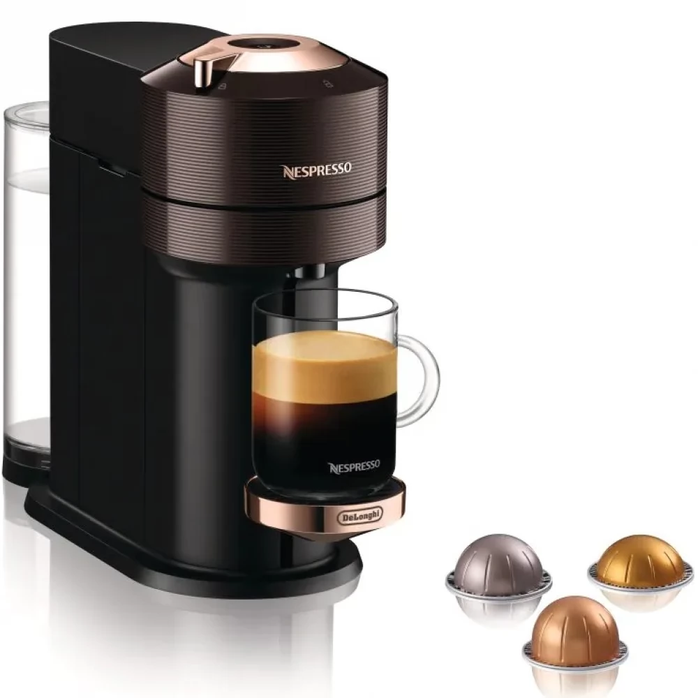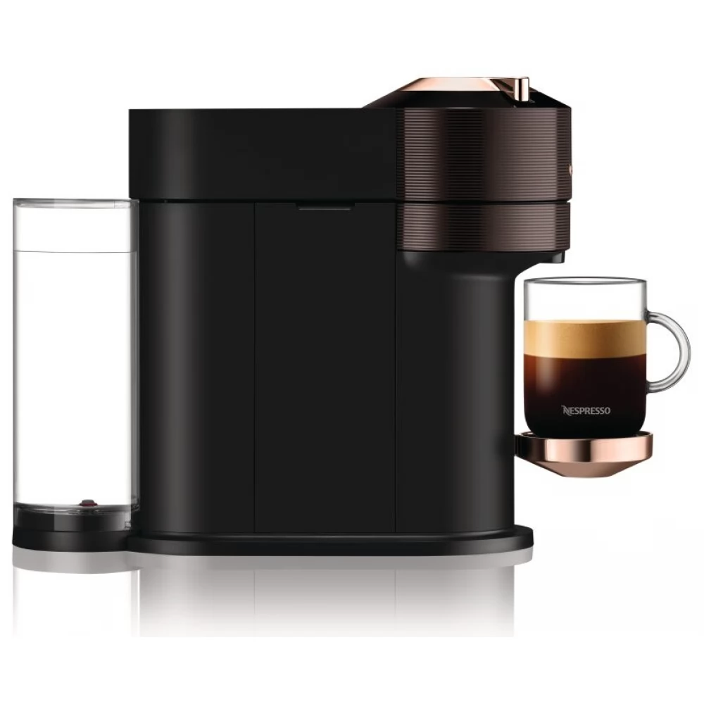 A Vertuo Next barna kávégép mindig többre törekszik. Bármilyen kávékapszulához is legyen kedve – reggel egy Mug, ebéd után egy Espresso, délután egy Gran Lungo - a Vertuo Next kávégépre mindig számíthat. Önnek csak döntenie kell, hogy éppen milyen kávéélményre vágyik, hiszen a kávégép ötféle csészeméretével többféle kávéstílus közül választhat egyetlen gombnyomás segítségével. A Vertuo Next kapszulás kávégép egy újszerű, ám valódi Nespresso kávéélményt kínál az új Centrifusion rendszernek köszönhetően. Valamennyi kávékapszulán egyedi vonalkód található, melyet beolvasva a kávégép a legapróbb paramétereket is pontosan beállítva készíti el kávéját, így az tökéletesen tárja fel rejtett értékeit – minden egyes blendből egyedi karakterű kávét készítve. A Vertuo Next számos előnnyel bír, gazdag színválasztékának és fémfelületeinek köszönhetően Ön is biztosan megtalálja a konyhájába illő kávégépet. A fenntarthatóbb jövőért a kávégép 54 százalékban újrahasznosított műanyagból készült. A kávégép további előnye, hogy Wi-Fi- és Bluetooth-kapcsolaton keresztül frissíti a szoftverét, hogy a kávézás élménye mindig tökéletes legyen. Új szintre emeli a ma kávéélményét.