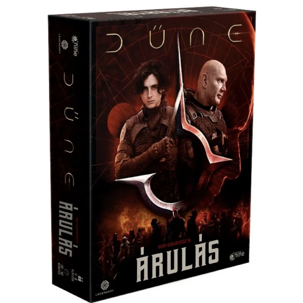 A Dűne mozifilm alapján készült társasjáték. Hűséges vagy a nemes Atreides-házhoz, vagy az álnok Harkonnen-ház titkos ügynöke? Ebben a taktikával és megtévesztéssel teli játékban titkos ügynökök vagytok a Dűne homoktengerében. A célotok, hogy kiderítsétek ellenségeitek kilétét, miközben megvéditek nemeseiteket. Vegyétek igénybe különös új eszközök és szövetségesek segítségét, hogy hatalomra és tudásra tegyetek szert. Legyetek ravaszak, céltudatosak és meggyőzőek! Rejtsétek el valódi természeteteket és közben derítsétek ki a többiekét. A harc utolsó köreiben a megérzéseitekre kell bíznotok magatokat. Kiknek a hátát fogjátok védeni, és kiket fogtok leszúrni? A Dűne sorsa rajtatok múlik. Engedjétek kibontakozni a kalandot a Dűne: Árulásban, a titkos szerepes játékok új klasszikusában.