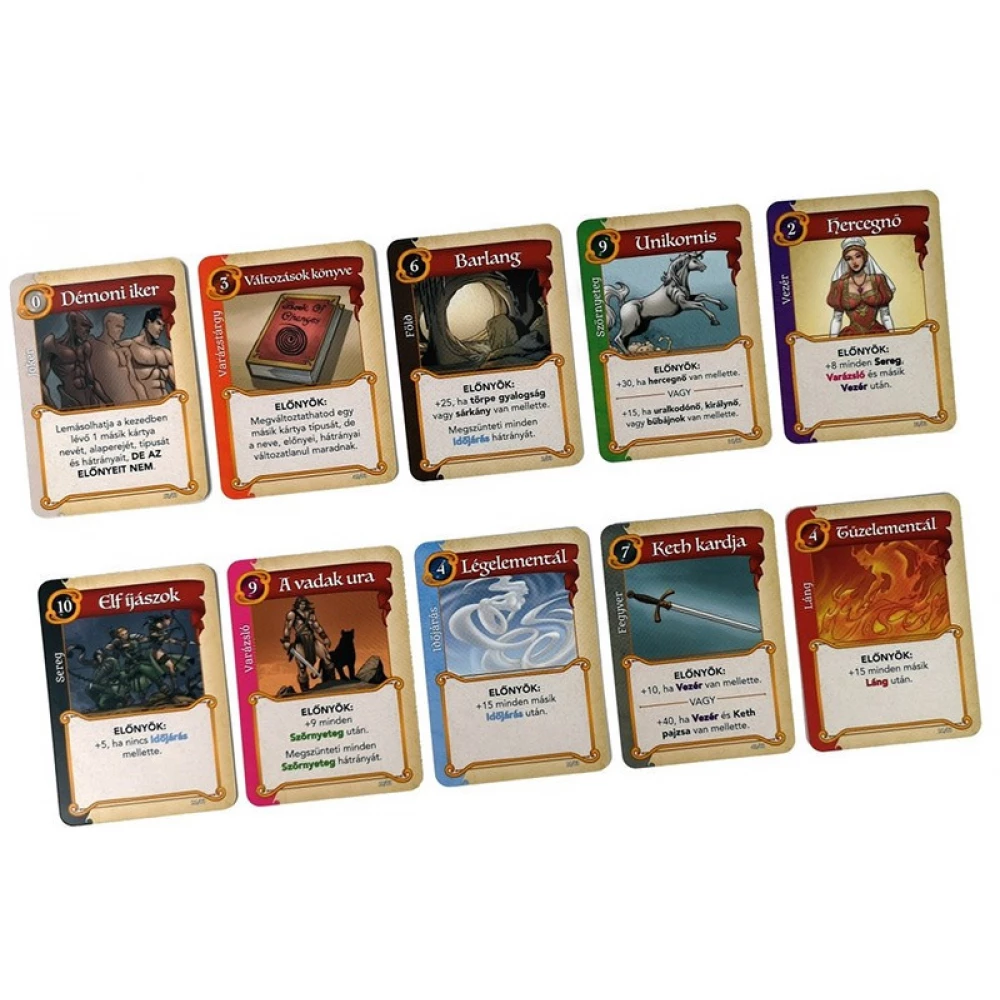 Egy távoli föld uralkodójaként az a feladatod,hogy a világ leghatalmasabb birodalmát építsd fel. Diadalmas seregekkel elsöpörheted az ellenfeleidet, ám nem csak ez azegyetlen út vezet a győzelemhez. Talán a birodalmad természeti erőkhöz hasonlóan mindent elpusztíthat,ami az útjába kerül. Vagy talán egy varázslót irányítasz majd, aki egy lángtengerrel elzárt szigeterődjéből intézi dolgait. A választás a tied,mert sosem lesz két egyforma birodalom... A játékosok igyekeznek lapjaik legjobb kombinációjával diadalmaskodni. A játék végén azonban csak a kezedben maradt 7 kártya kerül pontozásra, így válassz bölcsen!