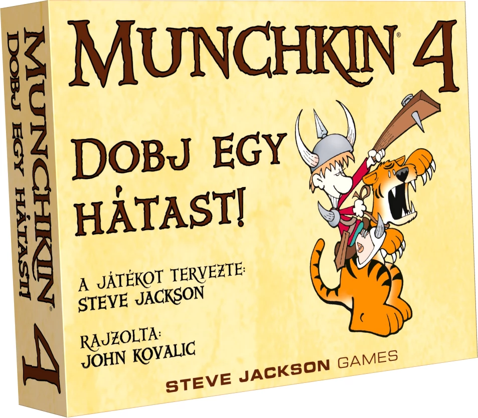 A tervező, Steve Jackson, és a rajzoló, John Kovalic, a Dobj egy hátast!-ban 112 új lappal gazdagítja a hátbaszúrós, fosztogatós, kéjmámoros-kaszabolós munchkin-mennyországot.