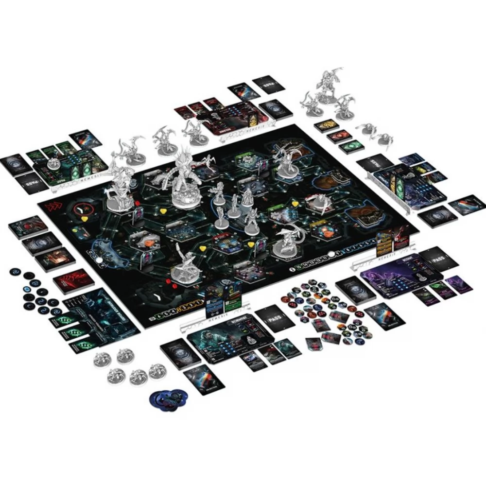 A Nemesis egy űrbéli túlélő játék 1-5 játékos számára, hihetetlen figurákkal, agyafúrt és lebilincselő szabályokkal, melyben megtalálható az együttműködés, a blöffölés, a hátbadöfés, és egy ikonikus tudományos-fantasztikus horror kaland minden egyéb kelléke.