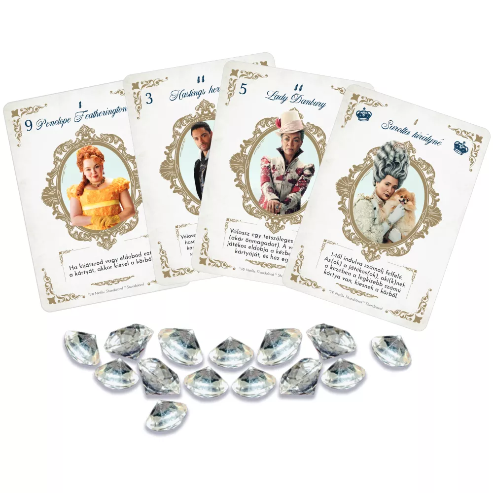 A játék több körös, melyek során szüntelenül érdeklődtök majd társaitok kártyái után. A saját fordulódban húzol egy kártyát a pakliból a kézben tartott kártyád mellé: ezek azt jelképzeik, hogy ki után kutakodsz éppen. Itt a döntés ideje: válassz egy kártyát, játszd ki magad elé, ne habozz tovább. A kijátszott kártya hatása végbemegy, a jutalom pedig a legtündöklőbb gyémántok egyike! Hogy mit kell tenned érte? Találj bizonyítákot Lady Whistledown kilétére oly módon, hogy a forduló végén a kezedben tartod a legmagasabb értékű kártyát; VAGY legyél te az egyetlen játékos, aki még versenyben van!