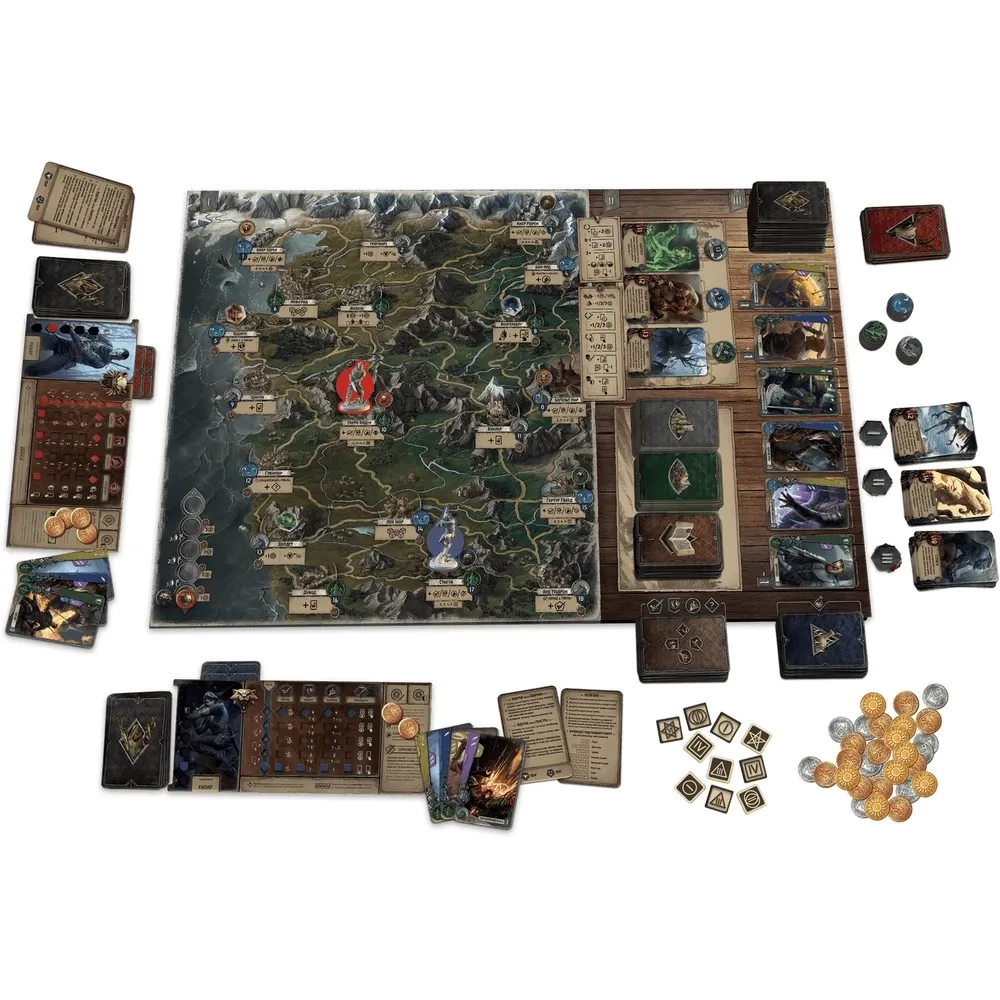 - 5 játékos készlet, mindegyik tartalma: 1 játékos tábla, 1 pontjelző, 10 kezdő akciókártya, 1 vaják miniatűr, 5 fakocka, 1 fából készült pajzsjelző, 4 vaják trófea kártya