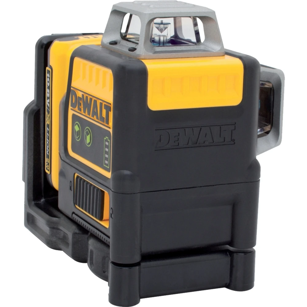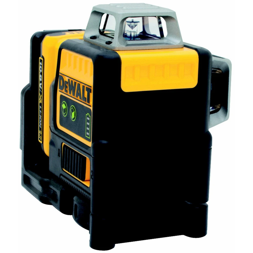 Az akkumulátoros üzemmódhoz 10,8 V / 2 Ah Li-Ion XR akkumulátor (DCB127) tartozik, 1/4" és 5/8" állványmenet csatlakozóval. A csomag tartalmaz szállítókoffert, falitartót, DCB107 töltőt, célkeresztet és lézerlátó szemüveget.