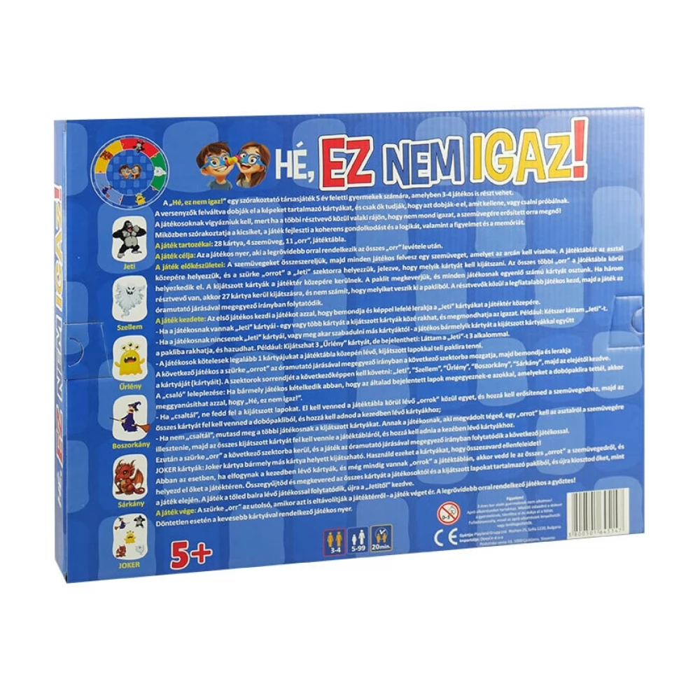 5 év feletti gyermekek számára készült játék, ahol 3-4 játékos vehet részt. A versenyzők felváltva szabadulnak meg a képpel ellátott kártyáktól, de képpel lefelé helyezik el azokat, így csak az a játékos tudja, aki a kártyákat adja, hogy kijátssza-e azt a kártyát, amelyet kell, vagy hazudni próbál. Óvatosnak kell lenniük, mert ha valamelyik játékos rajtakapja, hogy hazudnak, az orruk megnyúlik! Miközben a kicsiket szórakoztatja, a játék fejleszti koherens gondolkodásukat és logikájukat, valamint a memóriát és a koncentrációt. Játékosok: 2-4.