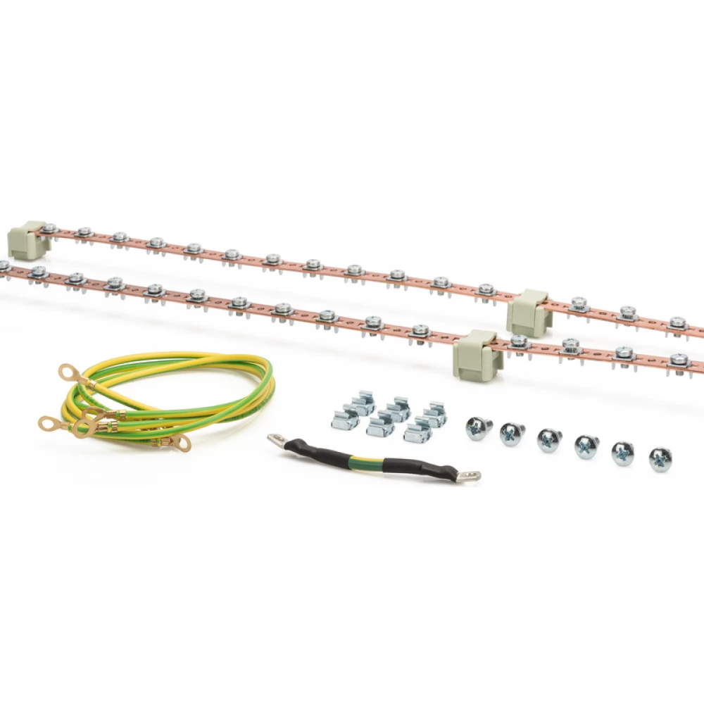 Potential equalization bar set, 2 pcs., 820 mm 2x 24 connection points, incl. earthing leads.
