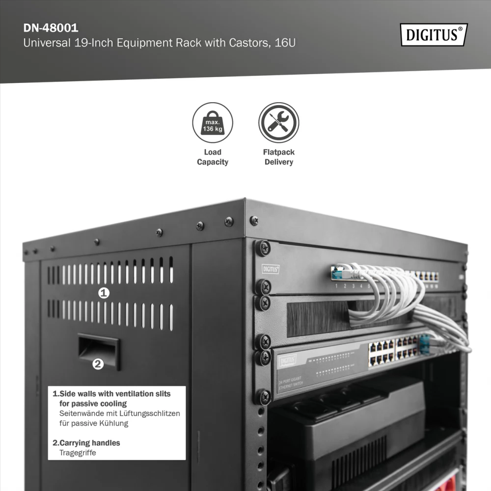 DIGITUS DN-48001 Universal 19-Inch Equipment Rack with Castors 16U