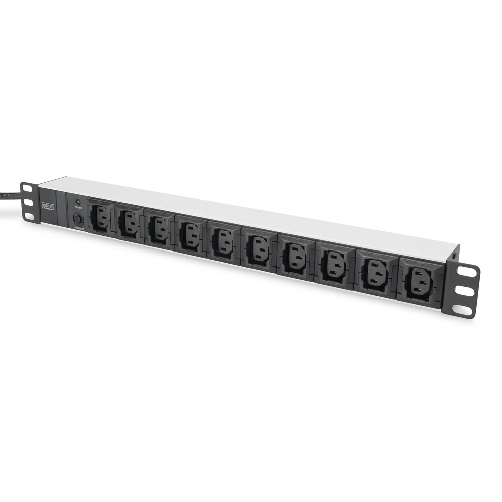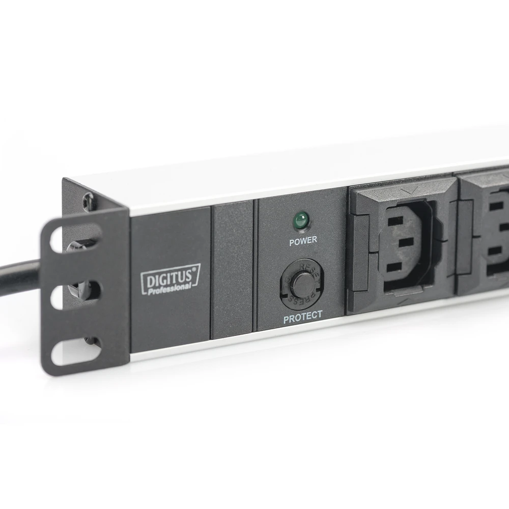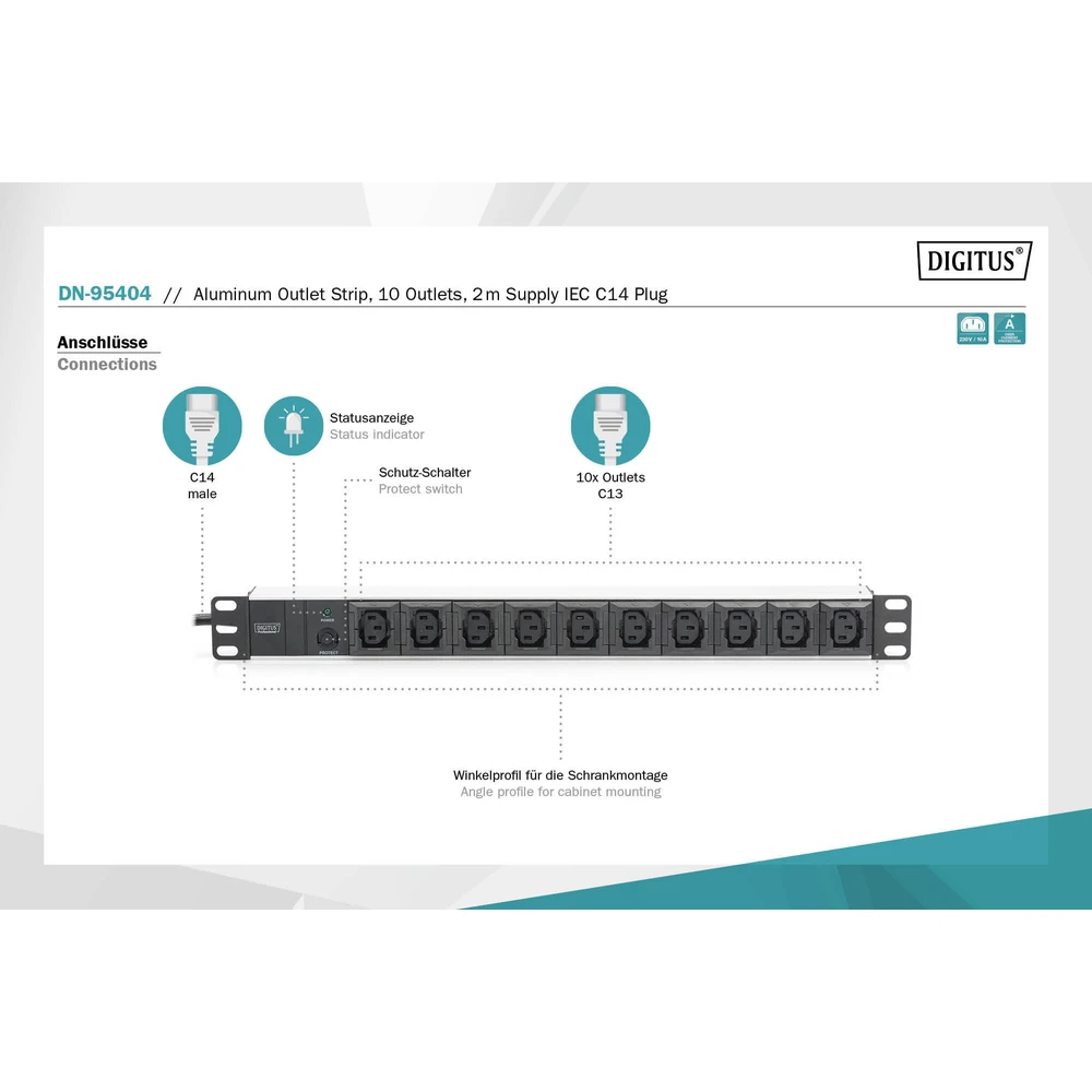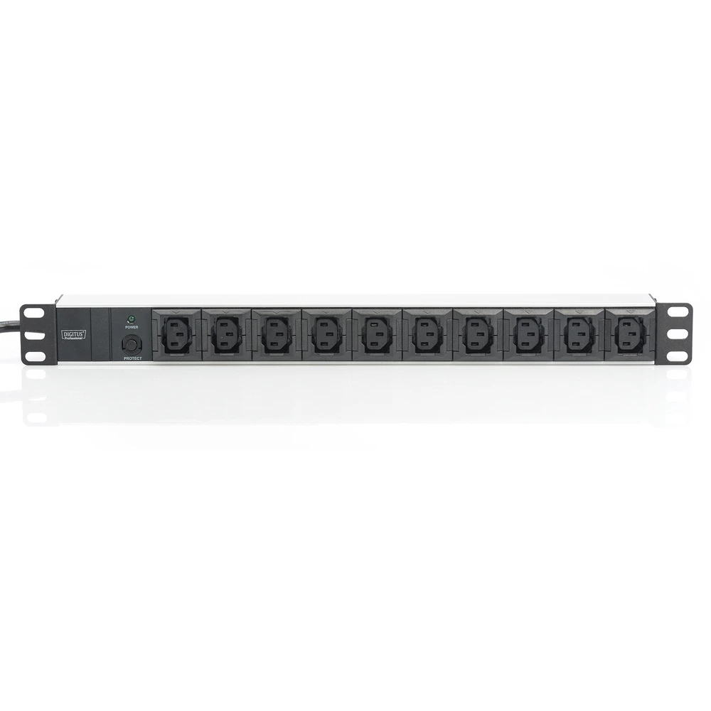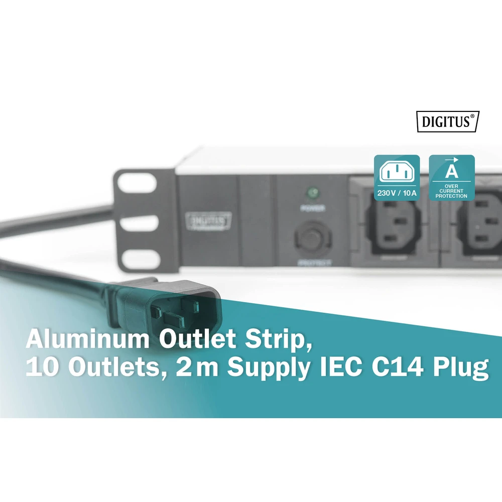 DIGITUS Professional Steckdosenleiste mit Aluminiumprofil 10-fach 2 m Zuleitung IEC C14 Stecker