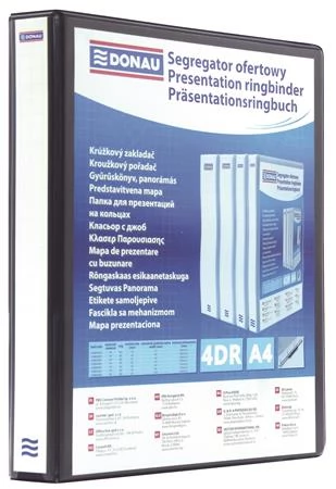 DONAU Gyűrűskönyv panorámás 4 gyűrű D alakú 20mm A4 PP fekete