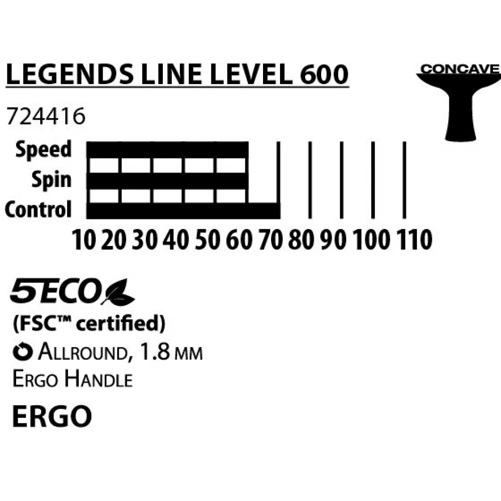 Ergonomikus markolattal ellátott pingpong ütő. Jó csavarási és sebességi tulajdonságok jellemzik.