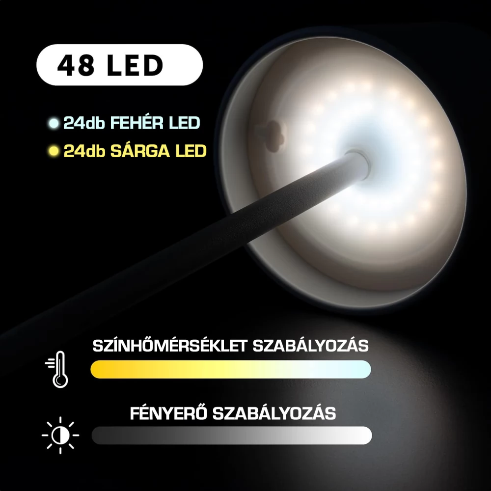 - Állítható fényerő és színhőmérséklet: A lámpa fényereje és színhőmérséklete több fokozatban állítható, így könnyedén alkalmazkodik az adott környezet hangulatához és igényeihez.