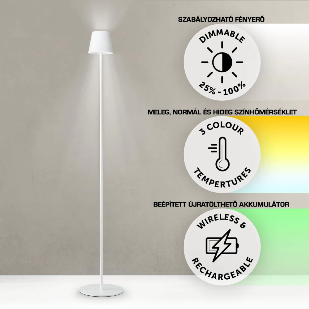 DÖRR Manta akkumulátoros álló LED lámpa 117cm fehér