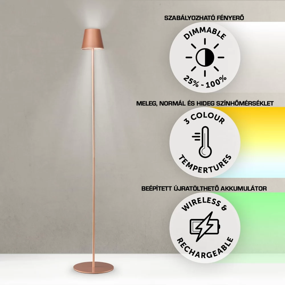 DÖRR Manta akkumulátoros álló LED lámpa 117cm réz