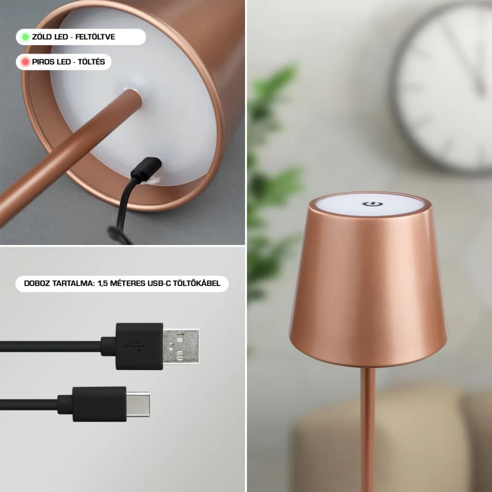 - Hordozhatóság és hosszú üzemidő: A lámpához tartozik egy 1,5 méter hosszú USB-C kábel a töltéshez, így könnyen újratölthető. Akkumulátoros működése akár 10 órás üzemidőt tesz lehetővé egyetlen feltöltéssel.