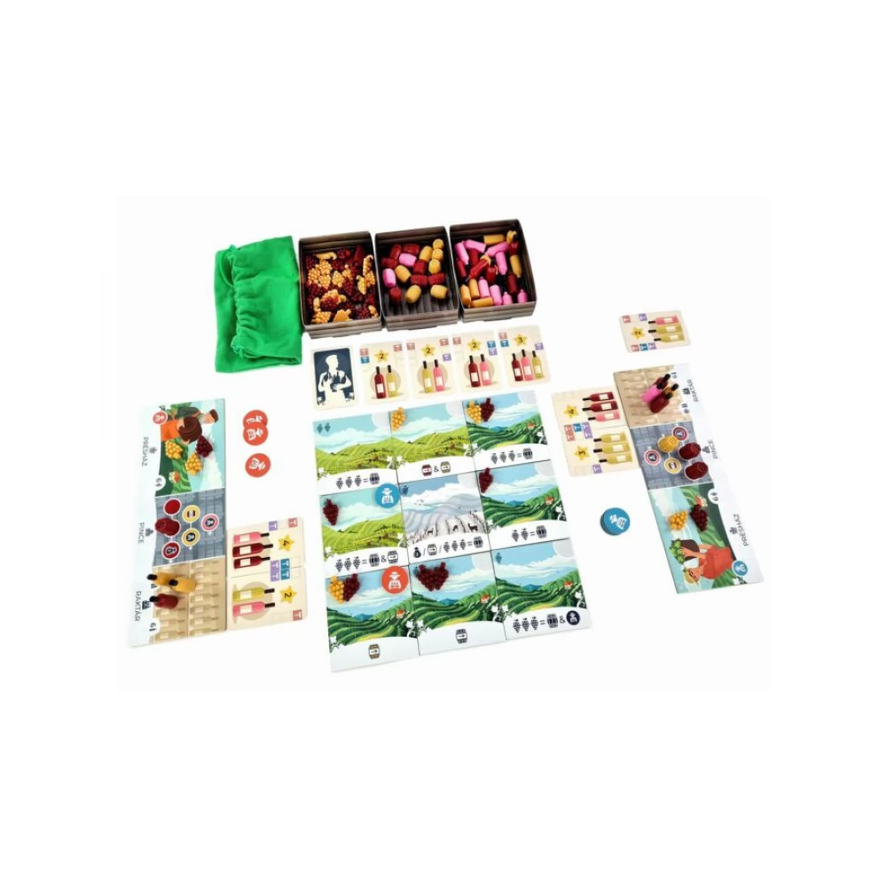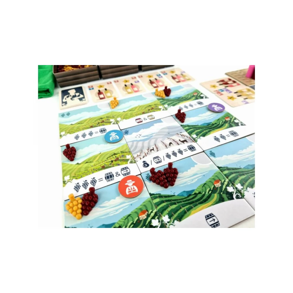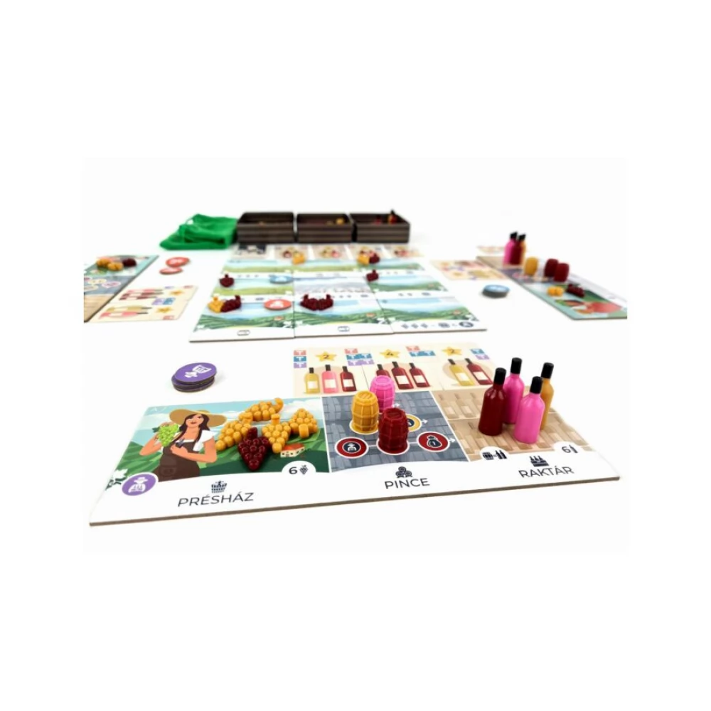 A Dűlőre jutunk magyar fejlesztésű, könnyen tanulható családi társajáték. A játékosok szüretelnek, préselnek, bort készítenek – hogy eladhassák azokat.