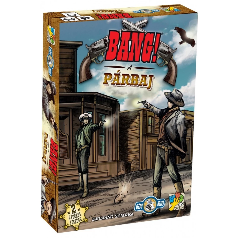 Újra szól a hatlövetű! A méltán népszerű Bang! társasjáték kétszemélyes változatában egy-egy csapat fegyverforgatót irányítva dönthetjük el, hogy ki is a leggyorsabb kezű a városban. Felváltva játszunk ki kártyákat; az egyik karakterünk a tűzvonalban áll, míg a másik a fedezékből igyekszik segíteni. A törvény képviselőinek és a banditáknak is saját kártyáik vannak eltérő képességekkel, de a cél ugyanaz: kilőni a másik játékos karaktereit, még mielőtt ők tennék meg ugyanezt velünk. Winchester, sör, börtön, indiánok és egy maréknyi új lap; a Bang!: A párbajban bizony minden megvan, ami egy klasszikus utcai leszámoláshoz kell – a spagettiwesternek hamisítatlan hangulatában.
