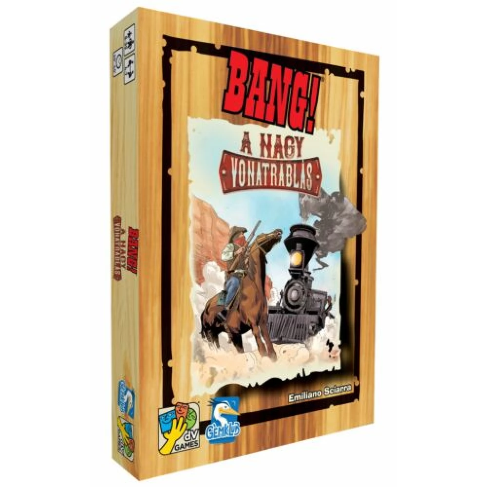 A Bang! A nagy vonatrablás a népszerű, titkos szerepes partijáték kiegészítője, ami új karaktereket és mechanizmust hoz a játékba: vonatot rabolhatunk, hogy az ott szerzett zsákmányokat felhasználhassuk egymás ellen...