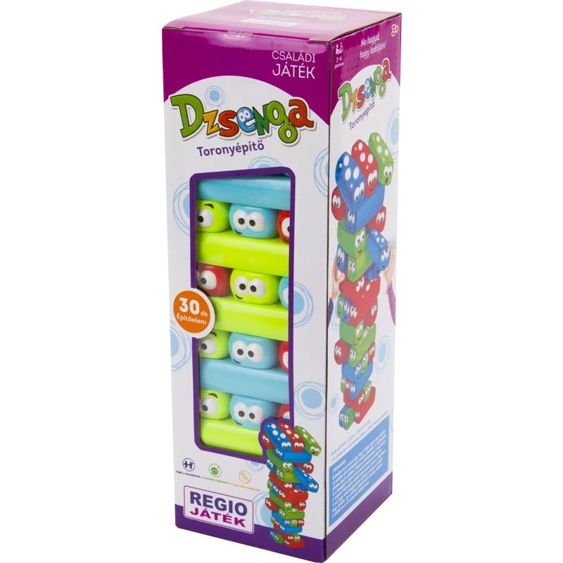 A Dzsenga toronyépítő társasjáték piros, zöld és kék vidám hasábokból álló társasjáték, ami az ügyességen alapul. Építsétek fel a tornyot az építőelemekből, és utána egyesével kezdjétek őket kihúzni. Arra figyeljetek, hogy a torony egyensúlyban maradjon, mert akinél ledől, elveszíti a játékot. A Dzsenga társasjátékot az nyeri, aki a legtöbb hasábot tudja begyűjteni anélkül, hogy a torony összedőlne.