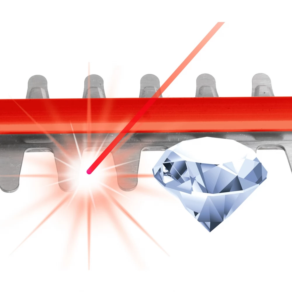 z Einhell GC-CH 18/50 Li-Solo praktikus akkumulátoros sövénynyírója a Power X-Change család erőteljes tagja és értékes segítője a kertben. Mindössze 2,2 kg súlyával könnyű sövénynyíró, ezért hosszabb munkavégzésre is alkalmas. A lézerrel vágott és gyémántcsiszolt acélból készült kések pontosak és tartósak, 50 cm-es vágási hosszuk akár 2400 vágás percenként. A kompakt sövénynyíróval gyönyörűen, teljesen vezeték nélkül nyírhatók bokrok, sövények és cserjék. Az akkumulátoros sövénynyíró a nagy első fogantyúval optimálisan üzemeltethető, míg a nagy kézvédő véd a sérülésektől. A sövénynyíró forgó hátsó fogantyúval van felszerelve. 90°-kal forgatható balra és jobbra. A robusztus fém fogaskerék hosszú élettartamot biztosít. Az alumínium késburkolat rögzíti a késeket, az erős tegez pedig védi őket tárolás és biztonságos szállítás során.