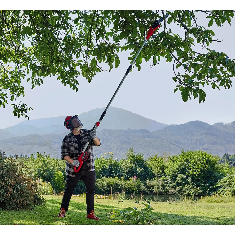 Az Einhell GC-LC 18/20 Li T-Solo akkumulátoros magassági ágvágó fűrésze nélkülözhetetlen segítőtárs a fák és magasabbra nőtt bokrok rendszeres ápolásában. Az ágvágó a Power X-Change család tagja. A készülék akkumulátor és töltőkészülék nélküli kivitelben érhető el. Ezeket külön – például különböző kapacitású, praktikus kezdőcsomagok formájában – vásárolhatja meg. A 200 mm kardhosszúság (csúcsminőségű OREGON fűrészlánc és vágókard) és az 5,5 m/sec vágási sebesség a biztosíték arra, hogy az ágakat probléma nélkül, gyorsan és hatékonyan el tudja vágni. A motorfej 30°-ban dönthető. A hosszabbítónyelet használva még a magasabban fekvő ágakat is könnyedén levághatja a készülékkel. A kényelmes munkavégzést és az erős tartást a gumírozott felületek biztosítják. A készülékhez tartozik egy gyárilag mellékelt heveder is. A fém hajtómű hosszú élettartamot garantál. A karmos ütköző fémből készült, a maximális biztonságról pedig a láncrögzítő csapszeg gondoskodik. A fűrész használat közben folyamatosan keni a láncot.