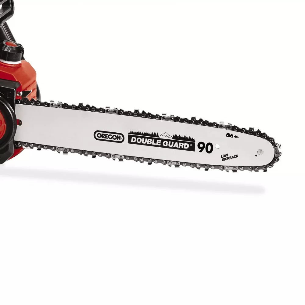 Az Einhell GP-LC 36/35 Li-Solo akkumulátoros láncfűrésze egészen biztosan leveszi a lábáról, hiszen egy rugalmas, erős és könnyen kezelhető segítőtársat ismer majd meg benne. A Power X-Change termékcsalád tagjaként a láncfűrész Einhell Brushless technológiával készült szénkefe nélküli elektromotorját két nagy teljesítményű 18 V akkumulátorral üzemeltetheti. A láncfűrészt nem kell az elektromos hálózathoz csatlakoztatnia, így bárhol, bármikor használhatja. A 350 mm hosszúságú OREGON vágókarddal és fűrészlánccal felszerelt akkumulátoros láncfűrész 15 m/s vágási sebességet garantál, melynek köszönhetően még a vastagabb fatörzsek elfűrészelése sem jelenthet neki akadályt. Sem a lánc cseréjéhez, sem a feszesség beállításához nem lesz szüksége külön szerszámra. A készüléket fémből készült robosztus körmös ütközővel szerelték fel. A maximális biztonságról a visszacsapódás-védelem, a láncfék és a láncfogó csapszegek gondoskodnak. A Softgrip felületű ergonomikus markolat még a hosszabb vágásokat is egyszerűbbé, a makacs, nehezen elvágható anyagok fűrészelését pedig könnyebbé teszi. A fűrész használat közben folyamatosan olajozza a láncot. A 120 ml űrtartalmú olajtartályt a nagyméretű betöltőnyíláson keresztül töltheti fel. A gyári csomagolás nem tartalmazza az akkumulátort és a töltőt. Ezeket külön, például különböző teljesítményfokozatú praktikus PXC-kezdőcsomagok formájában vásárolhatja meg.