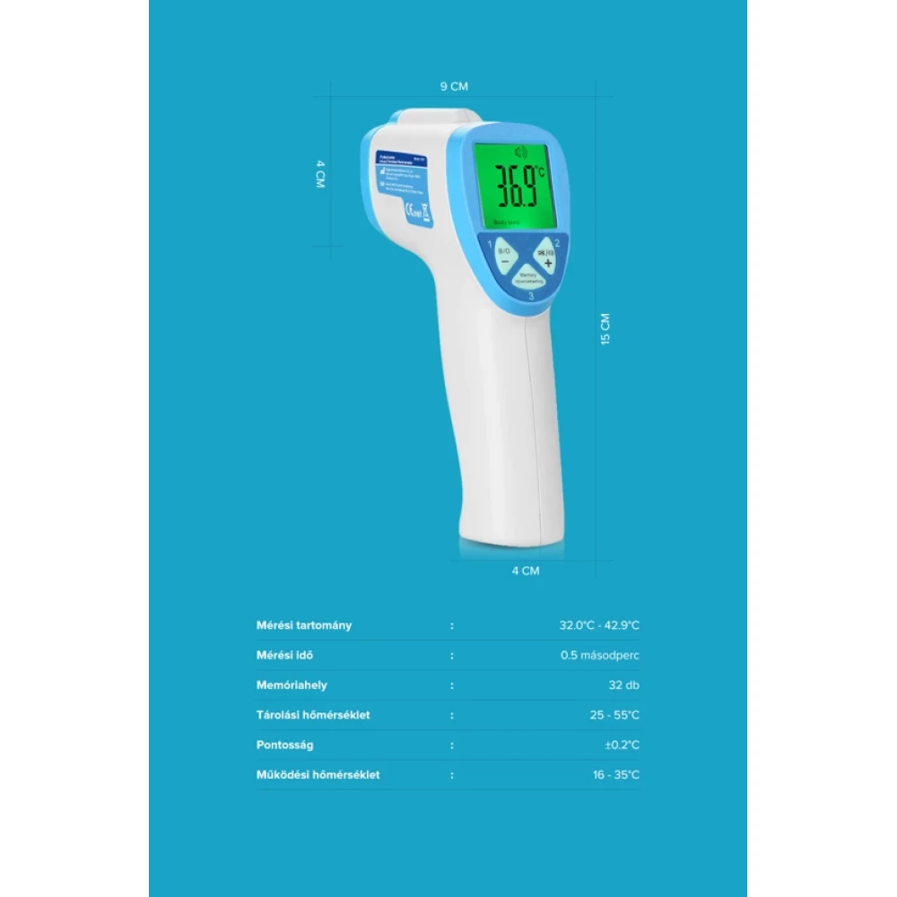 5-15cm távolságból irányítsa azt a csupasz homlokra, majd nyomja meg a Mérőgombot.