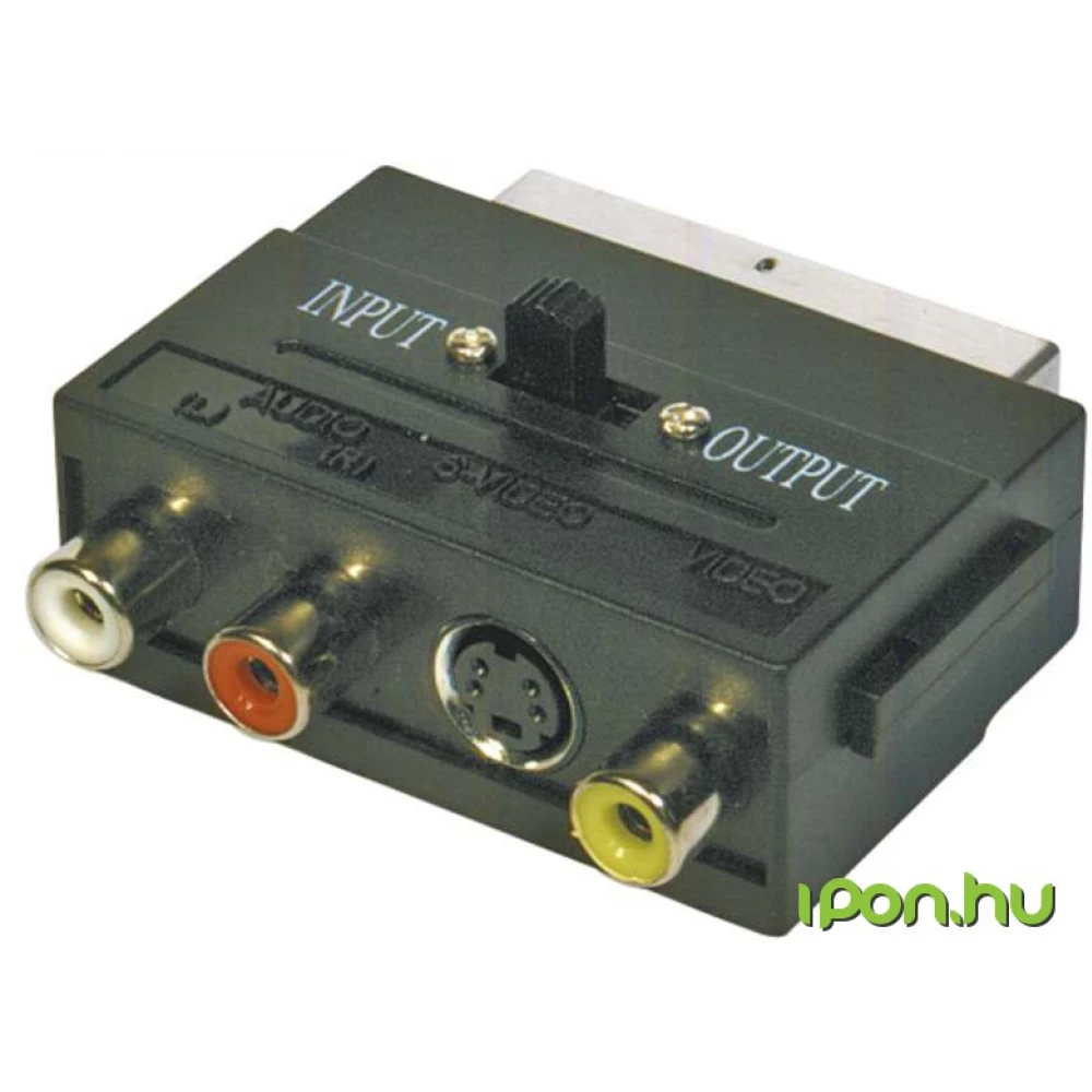 Fekete színű, 5cm hosszú SCART - RCA + S-VHS Átalakító adapter.