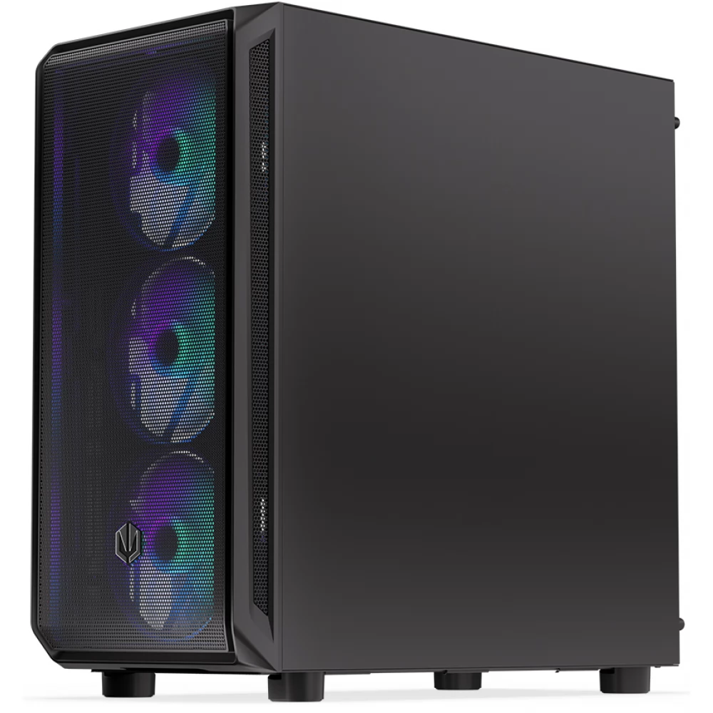 ATX formátumú Midi-torony kialakítású számítógépház 4 db beépített 140mm-es ARGB ventilátorral.