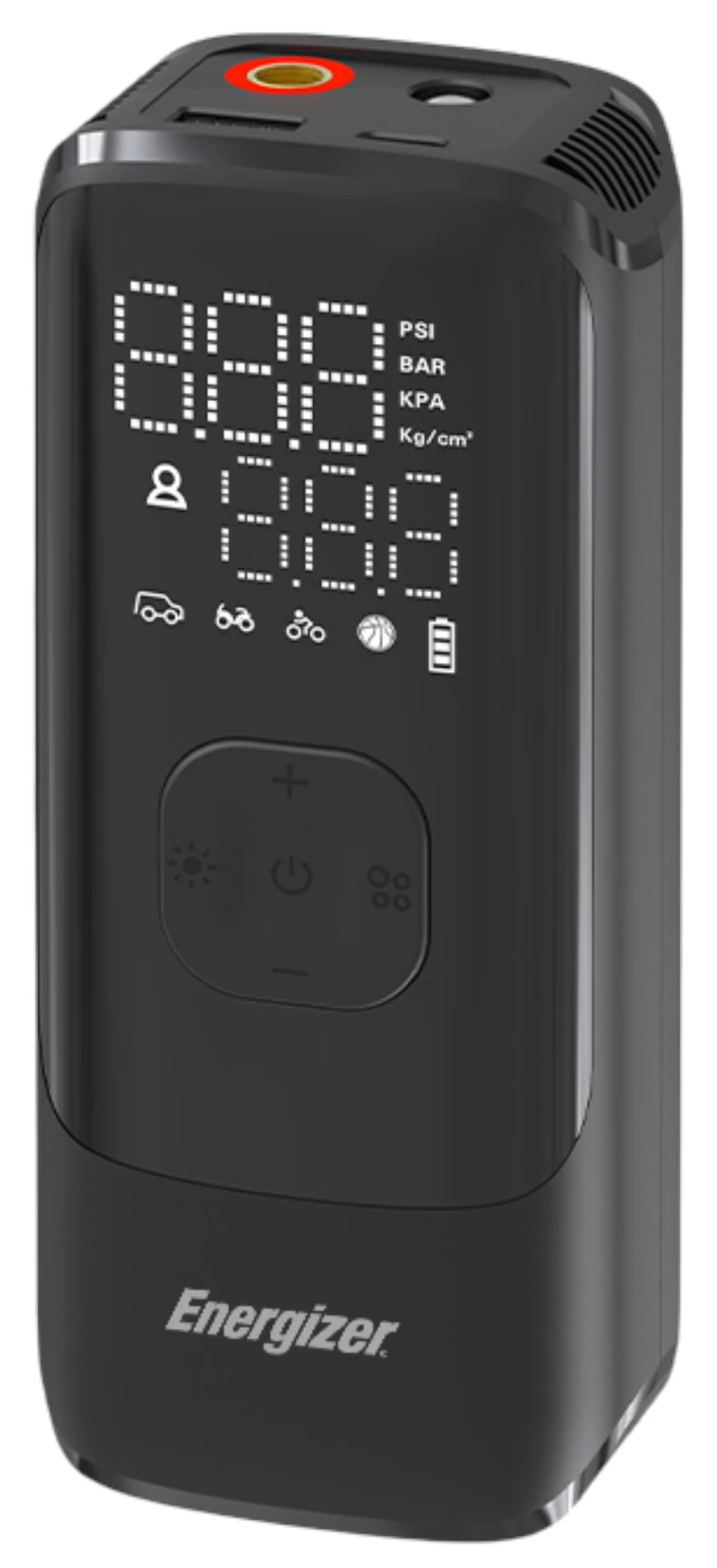 Az Energizer PAC4000 egy kettő az egyben készülék, melynek összetevői egy nagy teljesítményű kerékpár/ autó pumpa 150 PSI(10.3 bar) maximális nyomással és egy powerbank USB-A csatlakozóval.