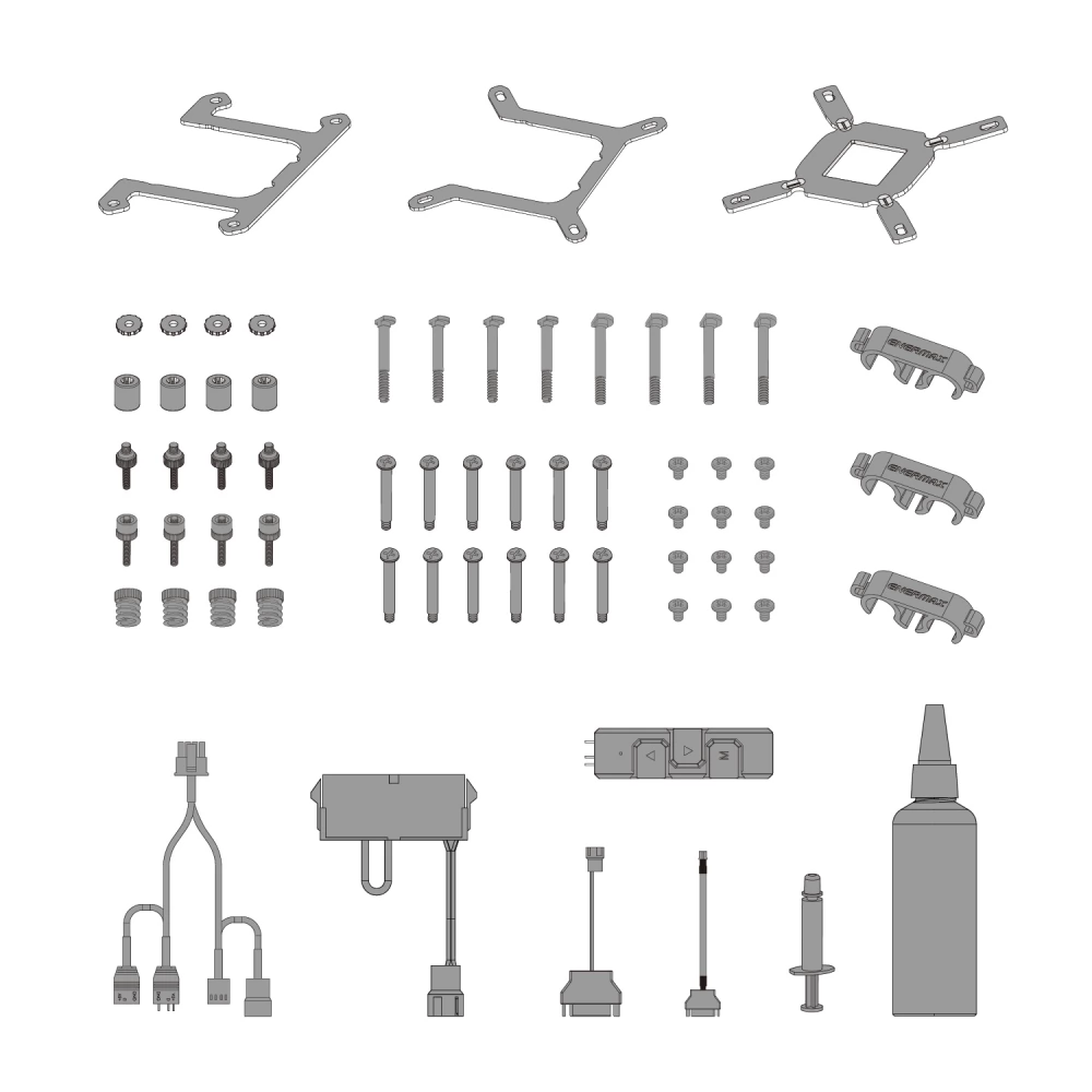 Kompakt, univerzális, vízhűtés 3 darab 120mm-es PWM sebesség szabályzású és vezérelhető ARGB világítású ventilátorral és CPU vízhűtő blokkal ami egy csendes 60mm-es ventilátort is kapott. A hűtés további különlegessége a dupla kamrás szivattyú, a 3mm lapátvastagságú ventilátorok (csökkenti a nem kívánatos vibrációt), a 90 fokban elforgatható CPU hűtőblokk fedél (a ház orientációjához igazodva) illetve a 38mm vastag radiátor ami egy újratöltő csatlakozással is rendelkezik (vízhűtés feltölthető igény/karbantartás esetén).