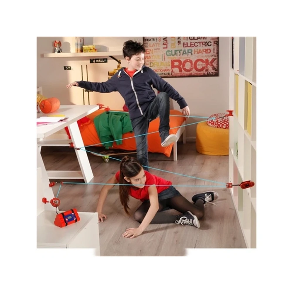 Telepsítsd fel a védelmi zónát a mellékelt zsinórok segítségével, állítsd be a kívánt visszaszámlálási időt, majd nyomd meg a START gombot – és kezdődjön a kaland! Mássz be a zónába anélkül, hogy hozzáérnél a zsinórhoz, különben a visszaszámlálás felgyorsul!