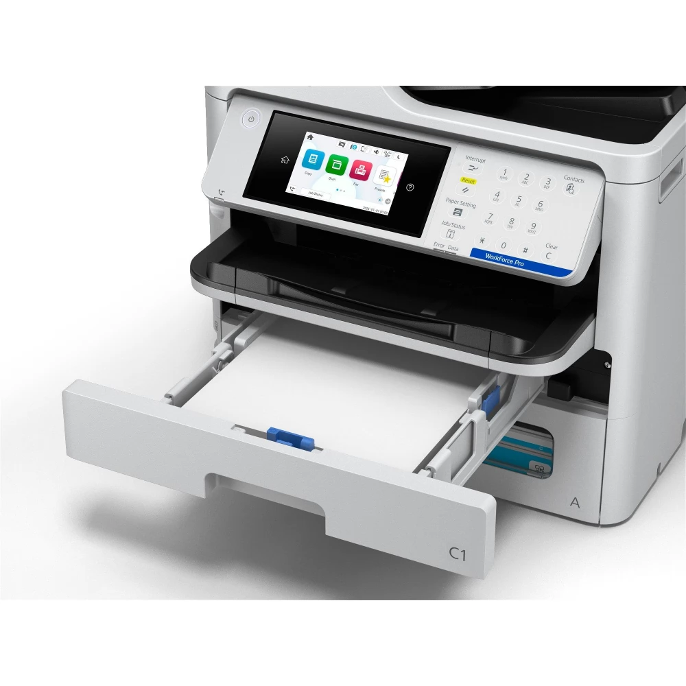 10,9 cm-es színes érintőképernyő, automata lapadagoló, nyomtatás, másolás, szkennelés és fax funkciókkal.