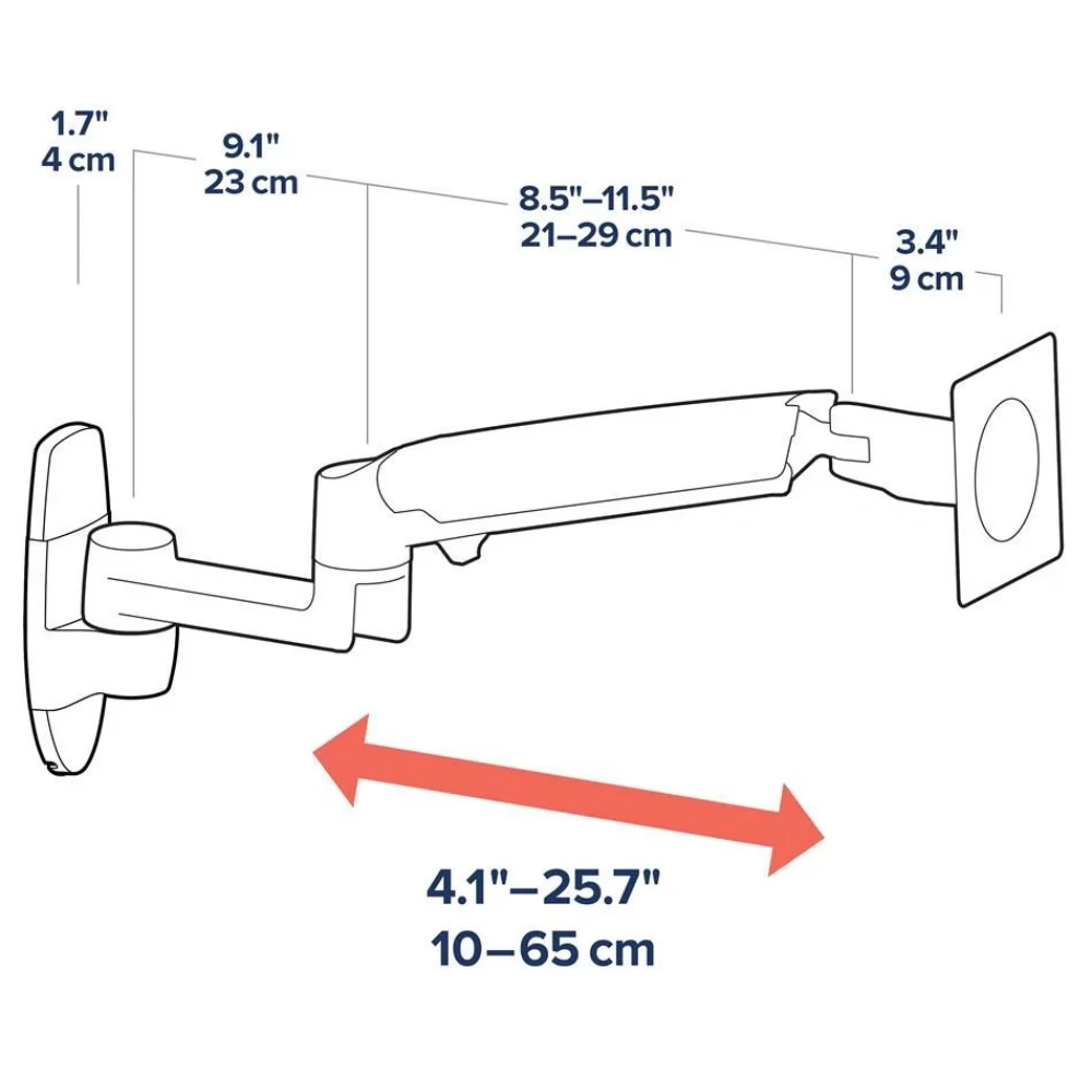 Találja meg a legjobb kilátást, takarítson meg helyet az asztalon, és fedezze fel legproduktívabb önmagát az LX fali monitorkarnak köszönhetően. Helyezze el a képernyőt minden projekthez oda, ahol szüksége van rá, majd nyerjen vissza egy lehetőségekkel teli helyet, ha összecsukja a kart, és félretolja a képernyő szünetében.
