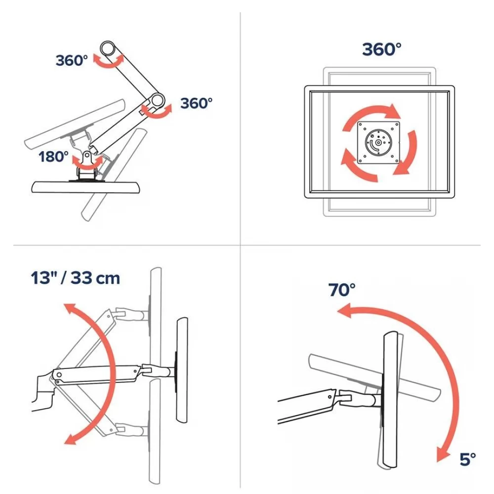 - Kényelmes illeszkedés: Teljes monitormozgást és jobb ergonómiát kínál