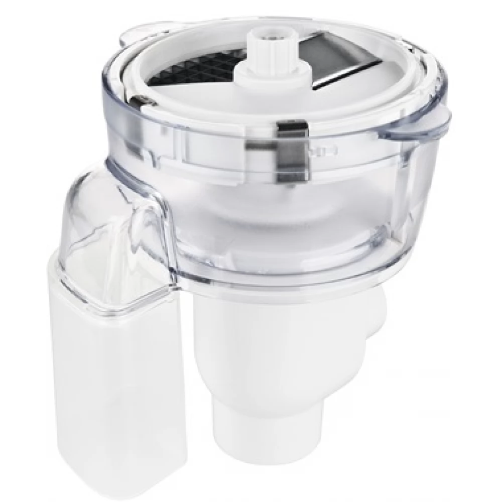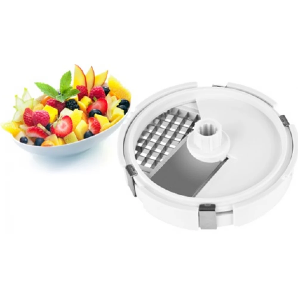 - A tartozék segítségével zöldségeket, gyümölcsöket és egyéb alapanyagokat lehet kb. 10 × 10 × 10 mm-es kockákra aprítani