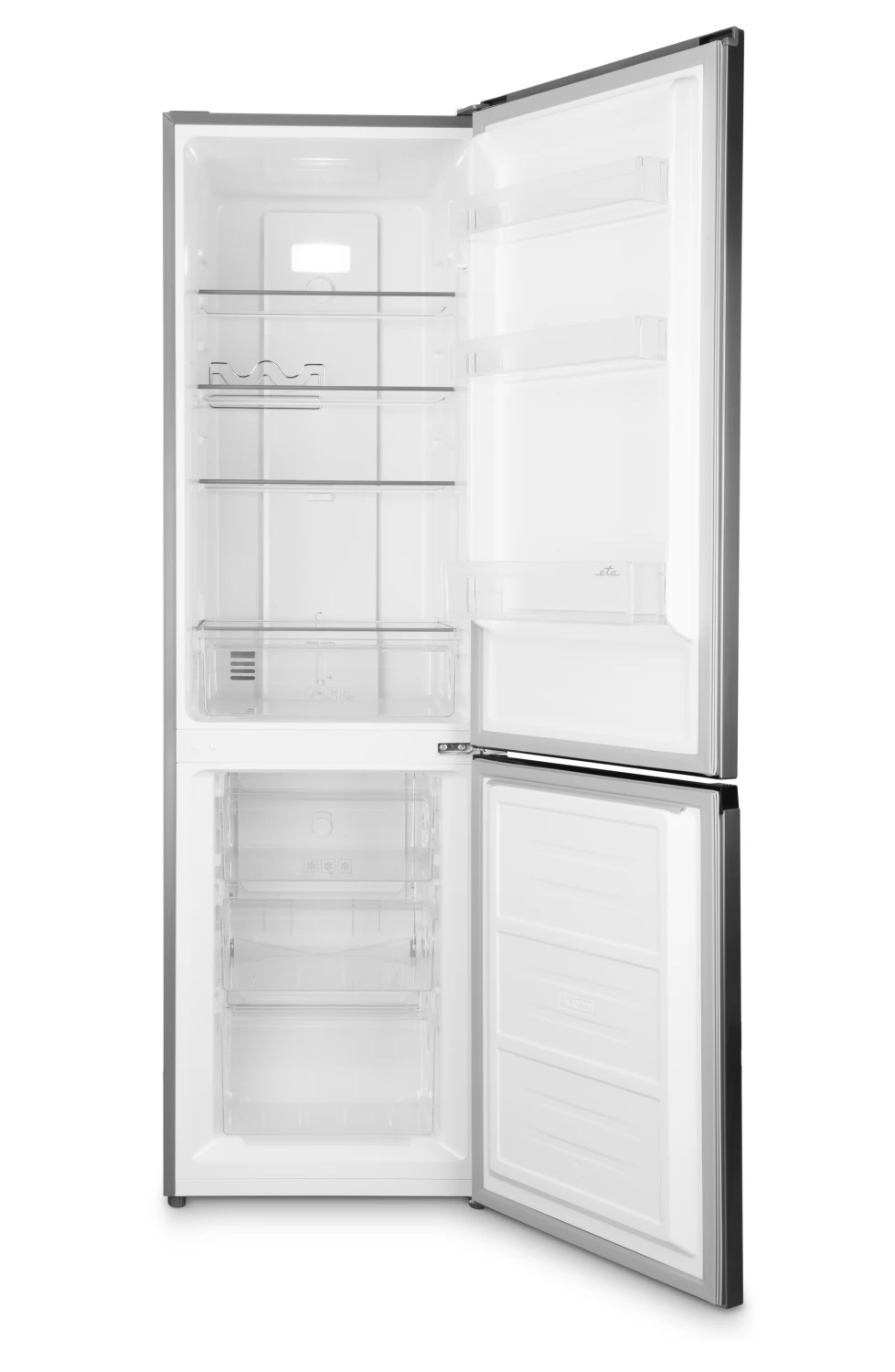Kombinált hűtőszekrény NO FROST technológiával, elektronikus hőmérséklet-szabályozással. Térfogat 182 l / 71 l, energiatakarékos LED világítás