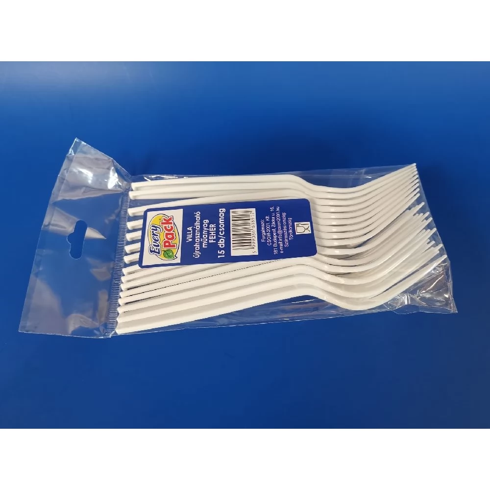 EVERY PACK 15331 PS műanyag villa újrahasználható 15db/cs fehér