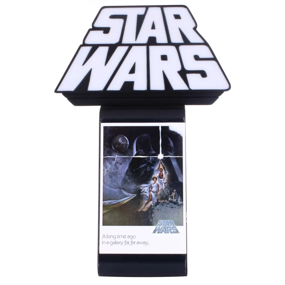 Az ikonikus Star Wars nyitóút ihlette, a világító logó egy megvilágított oszlopon helyezkedik el, amelyet klasszikus Star Wars posztermatrica díszít, amely egyedülálló szabadalmaztatott REST rendszerünket tartalmazza, amely készen áll arra, hogy bármit tartson a telefonjáról, a kontrollereiről és bármi másról. bízza rá – akár ebből a galaxisból, akár a távoli galaxisból.