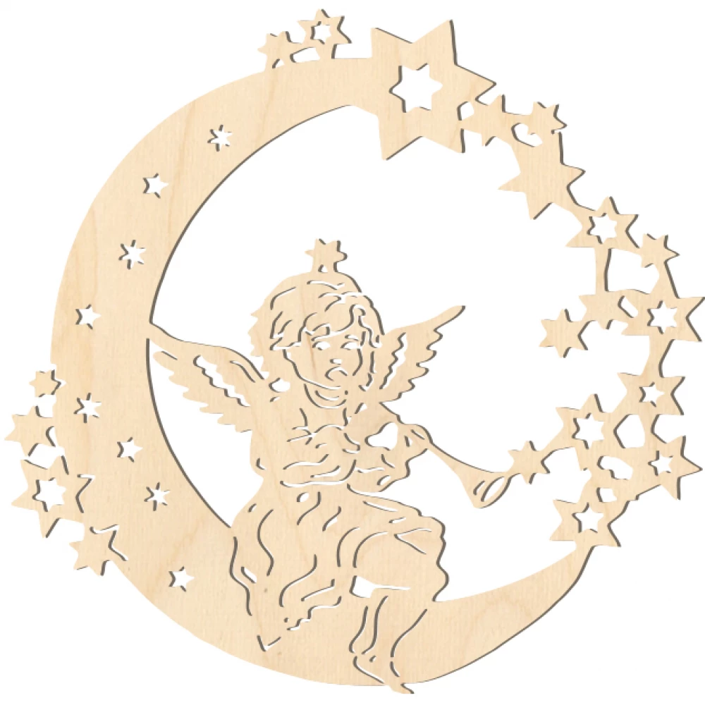 Fa karácsonyfadísz – Zenélő angyal Holdon 5db