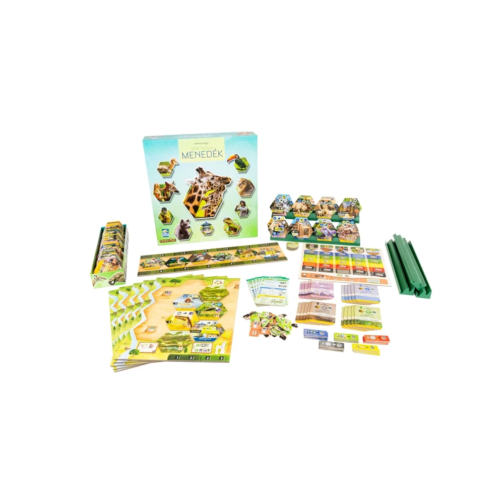 Az Ark Nova – Menedék egy önállóan játszható játék, amelyben a játékosok különféle állatokkal, épületekkel és projektlapkákkal töltik meg álomállatkertjüket, miközben a cél a látogatók elégedettségének növelése, fajfenntartó és természetvédelmi projektek támogatása. A Menedék a nagysikerű összetett játék, az Ark Nova örökségére épít, egyszerűsített és kifinomult mechanikákkal.