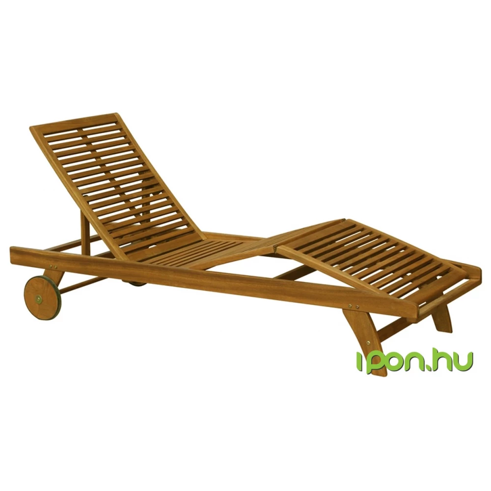 Állítható nyugágy, méretei: 190x70 cm. A háttámla és a lábtámasz dőlésszöge állítható. A könnyebb kezelés érdekében a nyugágy kerekekkel van ellátva. A nyugágy trópusi akácfából készült. Ez a nagyon kemény fa gond nélkül ellenáll az időjárás kellemetlen hatásainak, és alkalmassá teszi ezt a bútort kültéri használatra.