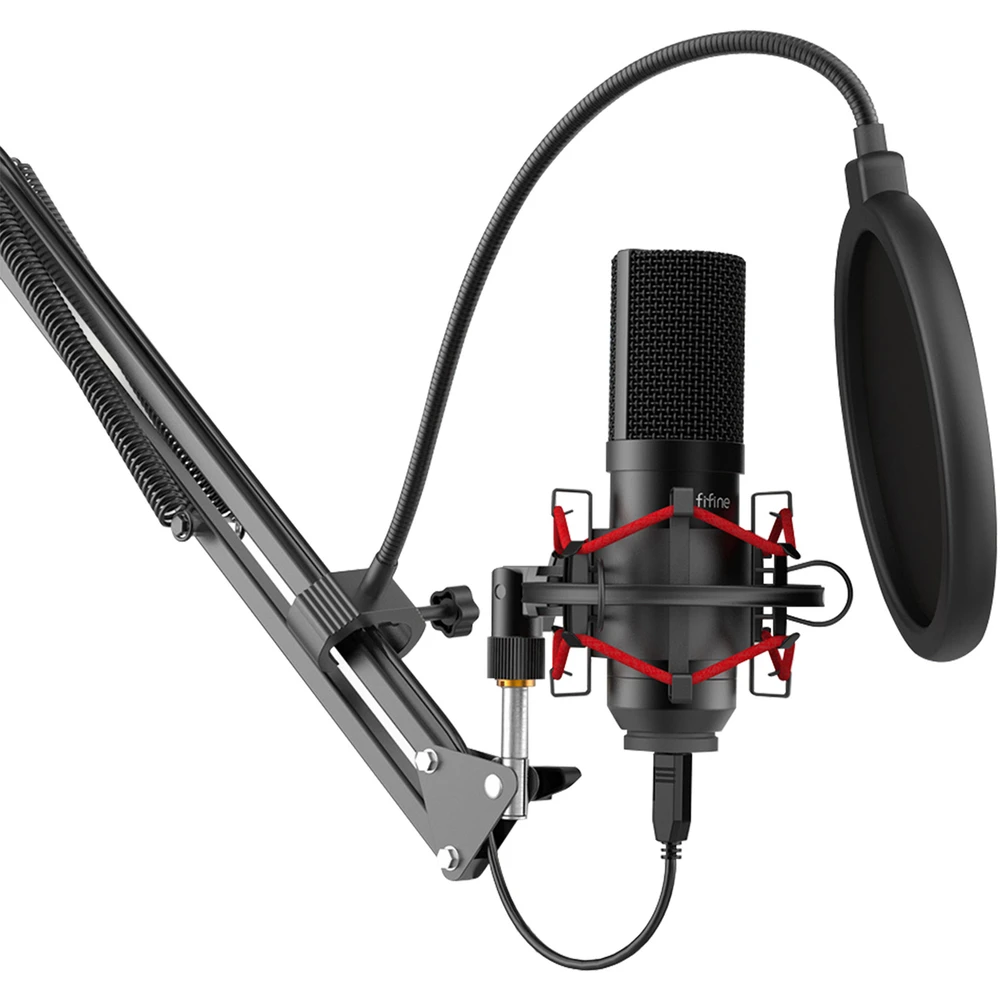 FIFINE Kondenzátor mikrofon állvánnyal kardioid USB fekete T732
