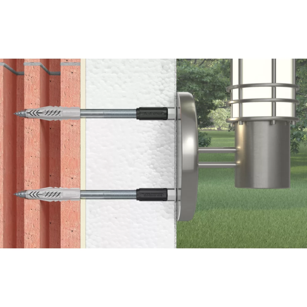 A fischer TherMax 8 távtartó dübel megoldás a külső falazatokba történő hőhídmentes rögzítéshez az ETICS esetén. A tőcsavarral szerelt üvegszál-erősítésű kónusz a speiális szerszám nélküli szerelés közben a vakolaton át belemaródik a hőszigetelő anyagba. A műanyag kónusz termikus gátat képez. Az állítható rendszer alkalmazható ETICS rendszereknél és a 45–180 mm vastag nem teherhordó rétegek esetén a rögzítésére. A TherMax 8 rendszerrel tömör- és üreges téglába, betonba, pórusbetonba közepes terheket, például lámpákat, levélszekrényeket, rögzíthetünk.