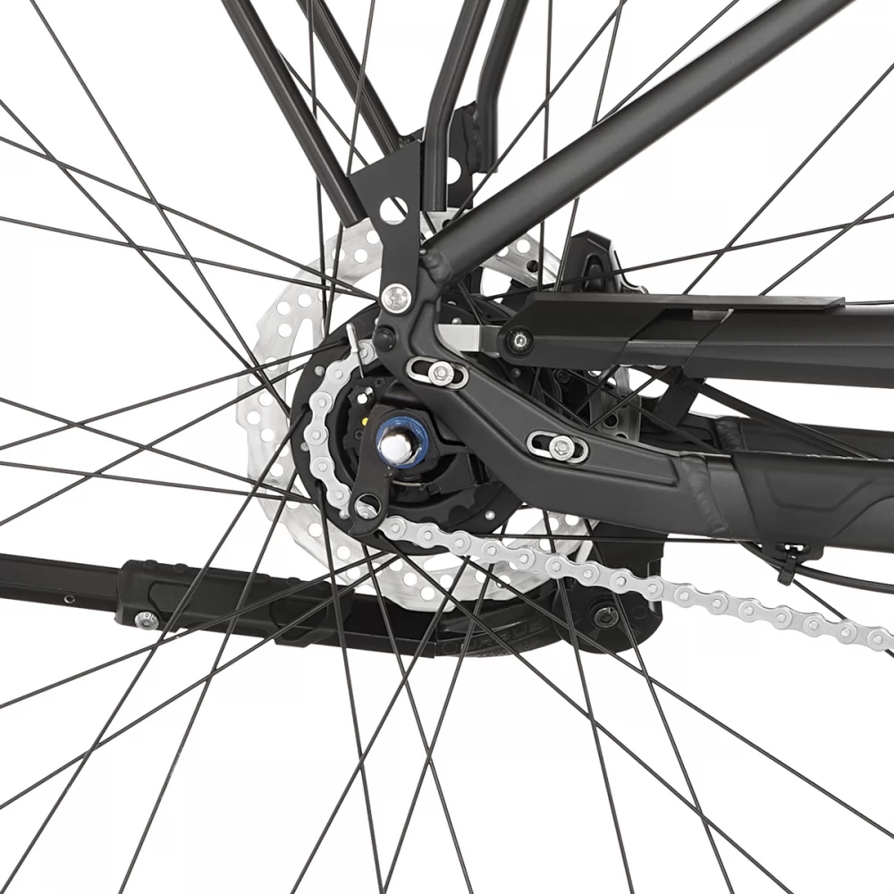 Sokoldalú, kevés karbantartást igénylő e-bike a legapróbb részletekig átgondolt technológiával és kiváló minőségben. A Németországban gyártott, különösen csendes és erőteljes BROSE Drive C Mag középmotor 50 Nm nyomatékot hoz az útra, és a 630 Wh-s akkumulátorral együtt nagy működési tartományt tesz lehetővé az alacsony bejáratú jármű számára. Akár munkába menet, akár felfedezőútra indul, a CITA 7.0i a SHIMANO Nexus 7 sebességes agyváltójával megbízható és kényelmes társ, amely minden kilométert élvezetté tesz. Az ERGOTEC rugós nyeregcső és a SUNTOUR rugós villa elnyeli az ütéseket. A nagy érintkezési felületeknek köszönhetően az 55 mm széles abroncsok jó tapadást és biztonságos haladást biztosítanak aszfaltos és murvás utakon egyaránt. A biztonság szempontjából fontos jellemzők, mint például a defektvédelem és a fényvisszaverő csíkok a gumikon, a 90 lux-os világítási rendszer és a hidraulikus tárcsafék kiemelik a kerékpár alkalmasságát, különösen városi használatra. A 150 kg-os megengedett össztömegével a modell különösen alkalmas magas és nehezebb emberek számára, és a FISCHER gyermek utánfutóinkhoz is tesztelték.