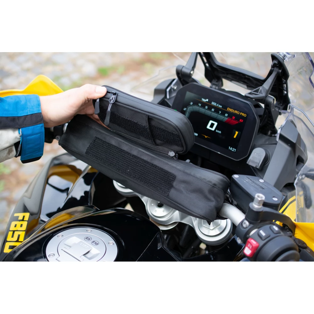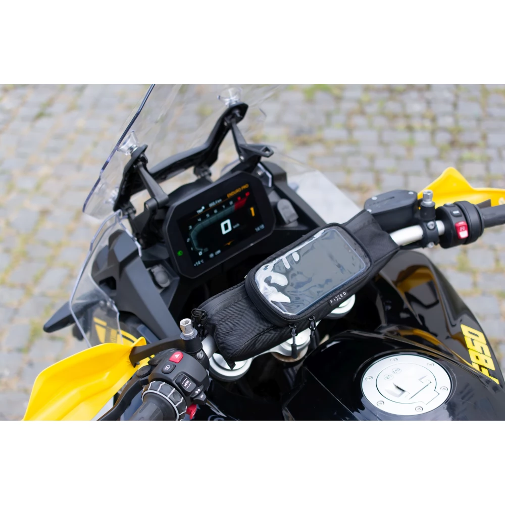 A vízálló FIXED kormányra rakható tok mobiltelefon, dokumentumok, pénztárca és egyéb fontos tárgyak tárolására szolgál motorozás közben. Egy 1,5 literes zsebből áll, kivehető telefontokkal. A nagy zseb cipzáron keresztül könnyen elérhető, és rengeteg helyet biztosít fontos dolgai számára. A mobiltelefontok minden telefonhoz alkalmas 7"-es átmérőjű kijelzőig. A teljes telefontok lecsatolható, így mindig kéznél lesznek a telefon és a fontos értéktárgyak. Ráadásul a telefontok hátulján van egy nyílás a töltőkábelnek, amit csatlakoztathat például egy, a nagy zsebben lévő power bankhoz. Az egész kormánytok tartós vízálló anyagból készült, és így ellenáll a kedvezőtlen időjárási viszonyoknak is.