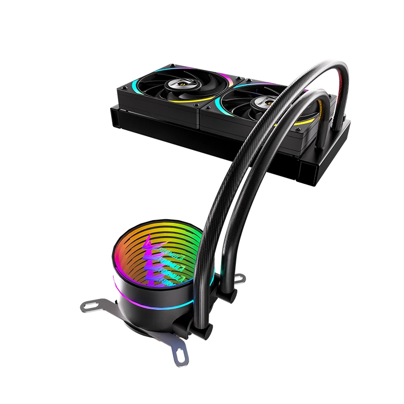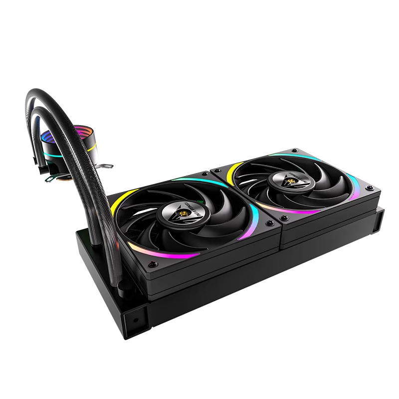 Kompakt, univerzális vízhűtés 2 darab 120mm-es vezérelhető ARGB világítású (keret sarkai) és PWM sebesség szabályzású ventilátorral, 240mm-es radiátorral és kerek vízhűtés blokkal ami szintén vezérelhető ARGB világítású 310W TDP-ig. A hűtés különlegessége a kerek CPU hűtőblokk látványos végtelen tükör fényhatása.