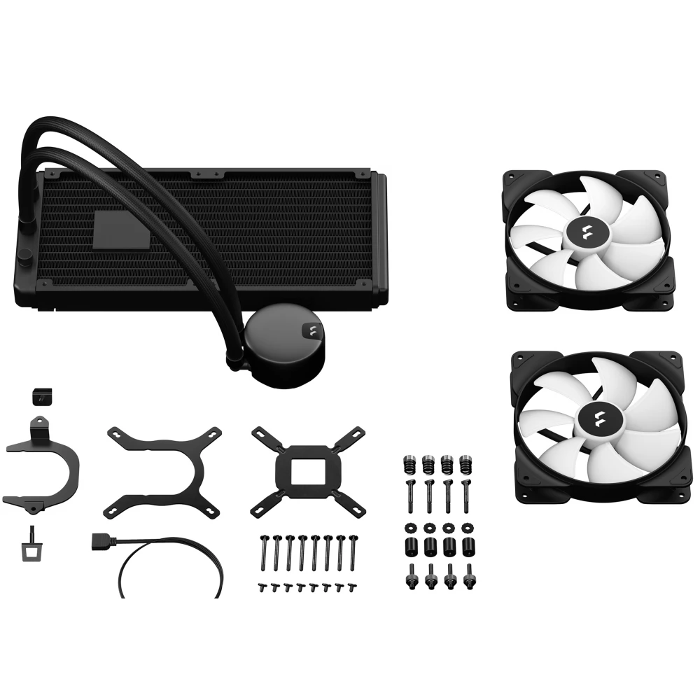 Kompakt, univerzális vízhűtés 2 darab 140 mm-es vezérelhető ARGB világítású ventilátorral és vízhűtés blokkal.